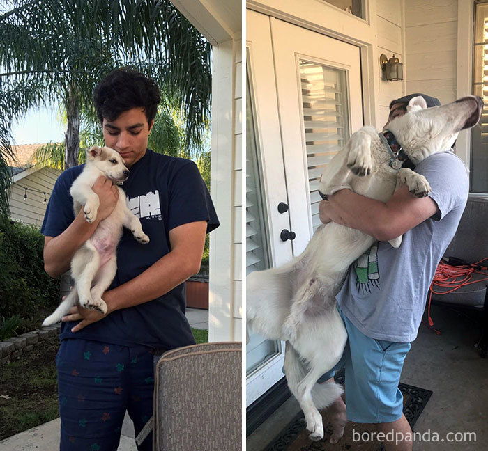 Los cachorros crecen muy deprisa. Parpadeas un par de veces y tu bolita de pelos se ha convertido en un perrazo. A causa de su rápido desarrollo, muchos dueños intentan documentar cada paso que dan sus mascotas. Aquí hemos recopilado otra lista con el antes y después de perros creciendo, y son tan adorables que te recordarán que hay que atesorar cada momento que pases con tu amigo de cuatro patas. Aquí debajo puedes verlos y votar por tus favoritos.