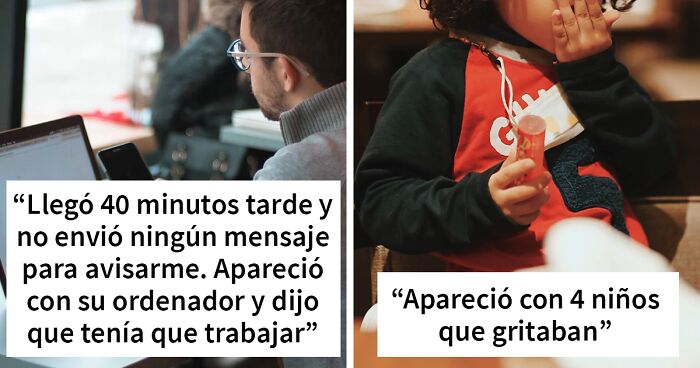 Llegó 40 minutos tarde y no envió ningún mensaje para avisarme. Apareció con su ordenador, dijo que tenía que trabajar y me dio algo de dinero para que le comprara un café y lo que yo quisiera. Me dije: “Bueno, está bien”, y me paré en la fila mientras lo miraba ponerse los auriculares y abrir su ordenador. Volví con las bebidas y me dijo que solo tenía que terminar algo y entró en una llamada. Me quedé sentada allí durante 40 minutos con nada de conversación y él escribiendo y chateando. Por cierto, esto fue un sábado y él había agendado el horario.