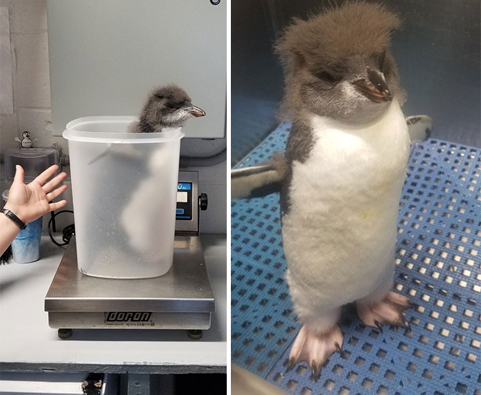 "Como imaginaréis, mantener a un animal salvaje quieto el tiempo suficiente para pesarlo, puede ser un desafío. Usamos barreños de plástico para los pingüinos, los ponemos dentro con cuidado y los colocamos sobre la báscula. Otros animales, como focas y leones marinos, están entrenados para subirse a la báscula como parte de sus actividades enriquecedoras, lo que hace todo un poco más fácil," cuenta Emily Greenhalgh, bióloga marina que trabaja en el Aquarium New Englan en Boston.