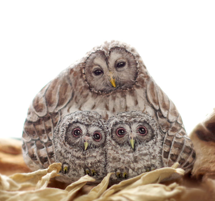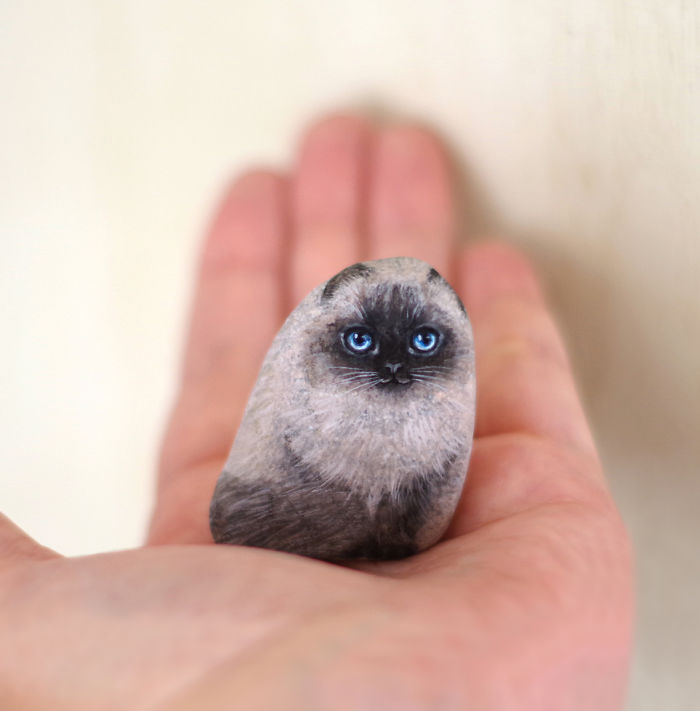 Para mi, las piedras no son solo materiales o lienzos en los que pintar cosas. No pinto piedras arbitrarias, sino que son opuestos significativos que me inspiran a trabajar con ellos. Nunca altero su forma.