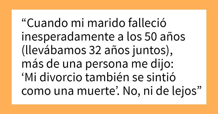 Cuando mi marido falleció inesperadamente a los 50 años (llevábamos 32 años juntos), más de una persona me dijo: “Mi divorcio también se sintió como una muerte”. No, ni de lejos.