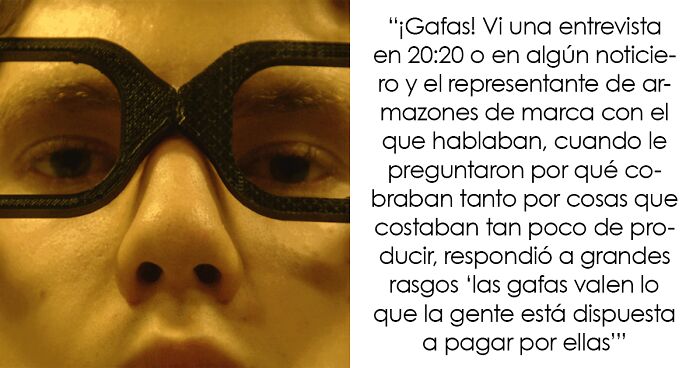¡Gafas! Vi una entrevista en 20:20 o en algún noticiero y el representante de armazones de marca con el que hablaban, cuando le preguntaron por qué cobraban tanto por cosas que costaban tan poco de producir, respondió a grandes rasgos "las gafas valen lo que la gente está dispuesta a pagar por ellas..."