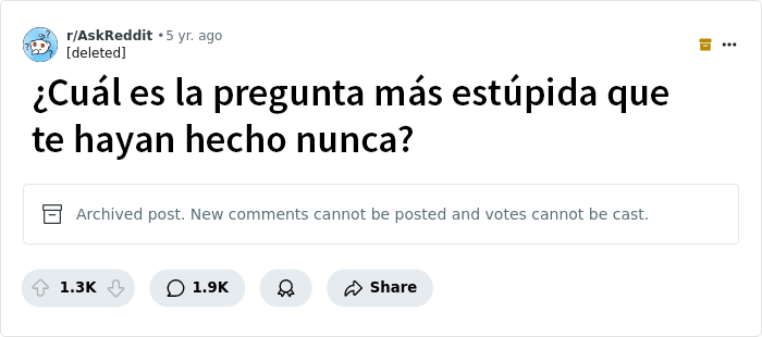 Alguien preguntó: «¿Cuál es la pregunta más estúpida que te han hecho?», y los internautas compartieron las preguntas más alucinantes que han escuchado. Así que ponte cómodo, prepárate para sentirte profundamente confundido, vota por los ejemplos más desquiciados y, si tú también has oído una pregunta muy tonta, no dudes en compartirla en los comentarios.