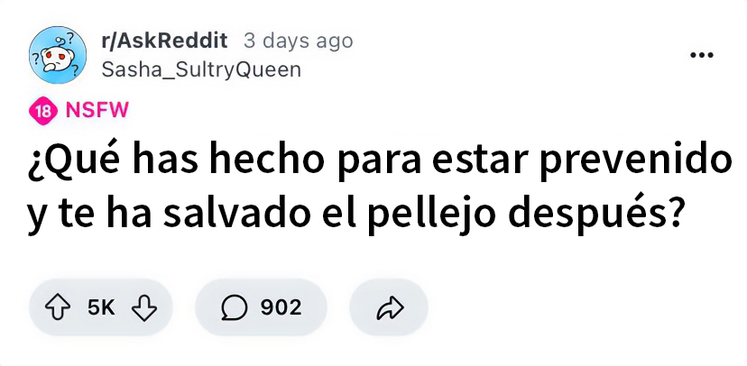 Alguien preguntó: «¿Qué has hecho para estar prevenido y te ha salvado el pellejo después?», y la gente compartió sus mejores experiencias. Así que ponte cómodo mientras lees estas historias, toma notas, vota por tus favoritas y no dejes de añadir tus propias ideas en los comentarios.