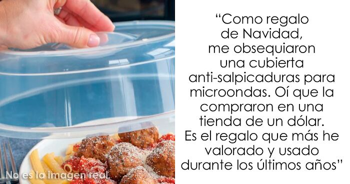 Como regalo de Navidad, me obsequiaron una cubierta anti-salpicaduras para microondas. Oí que la compraron en una tienda de un dólar. Es el regalo que más he valorado y usado durante los últimos años.