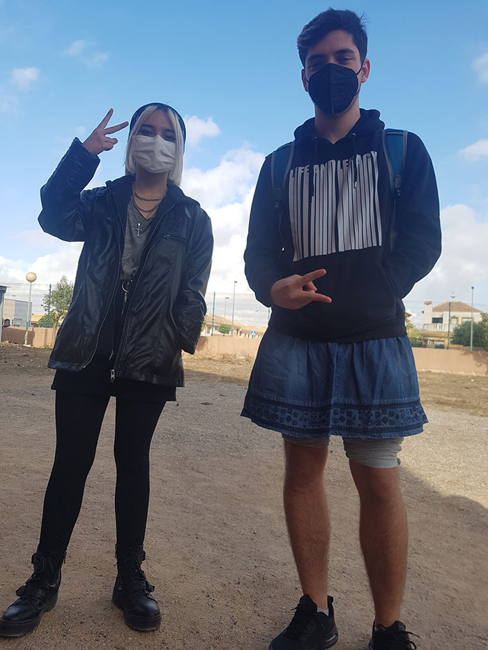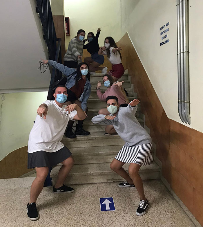 A principios de mayo 2021, Manuel Ortega de 37 años y Borja Velázquez de 36 años comenzaron a acudir a clase vestidos con falda en respuesta a un caso reciente de acoso escolar en la escuela primaria Virgen de Sacedón en Valladolid, en la cual trabajan. En esa situación en particular, un niño fue acosado por usar una sudadera de anime, y tuvo que soportar insultos homofóbicos, hasta que finalmente decidió quitarse la prenda.