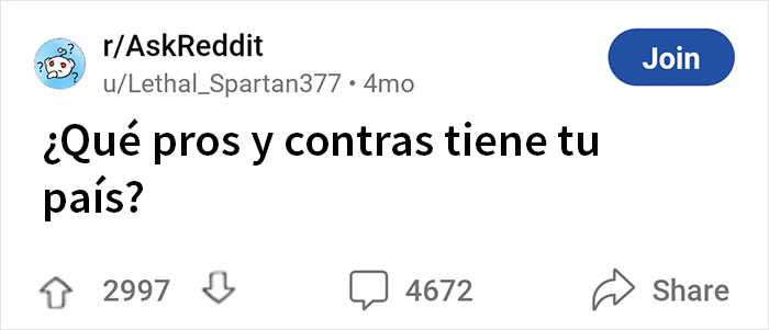 Personas de diferentes lugares del mundo se unieron a este hilo para compartir los pros y los contras de su tierra natal. Desde la cultura y la comida hasta la política, la economía y la calidad de vida, verdaderos expertos comparten lo que hace que su hogar sea tan fácil pero increíblemente difícil de amar. Y es una oportunidad perfecta para aprender cosas sobre países que nunca encontrarías en los folletos turísticos.