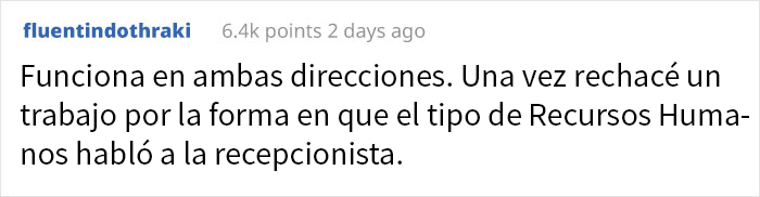 Esta publicación viral consiguió 45100 votos y 2400 comentarios, y el usuario contó como un candidato «arruinó su entrevista en los 5 primeros minutos tras entrar al edificio». Y la historia es muy comprensible. Aquí puedes leer el incidente, y te dará que pensar antes de intentar otra entrevista de trabajo.