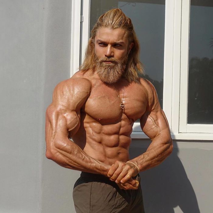 La compañía, llamada Father & Sons, parece estar especializada en ropa prieta para hombres. Para mostrar el máximo potencial de sus productos, contrataron a un modelo bastante extremo llamado Shaun Rezaei, que parece estar obsesionado con el culturismo.