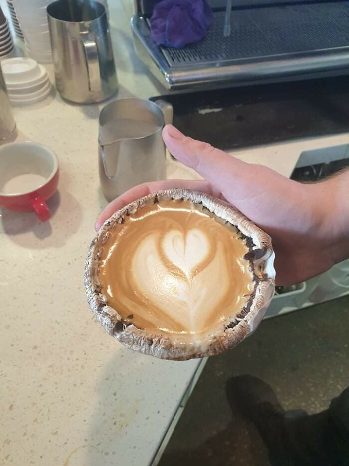 Café con leche servido en una seta Portobello