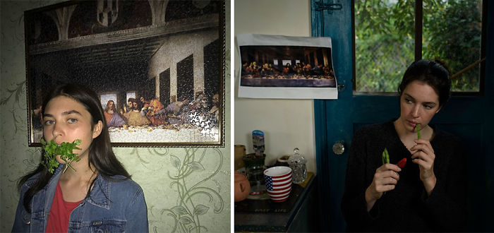 La fotógrafa Reza Bahram, residente en Los Angeles, comenzó su proyecto "ReCognition" para "recrear algunos de los momentos más locos de la vida de la gente." Estuvo mirando unas 5000 cuentas públicas de Instagram y eligió las fotos más creativas, dramáticas y auténticas. La artista explica que quería mostrar las emociones reales que se ocultan detrás de esos selfies con filtros compartidos.