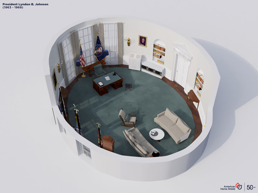 Como parte de las celebraciones de su 50º aniversario, American Home Shield decidió echar un vistazo a la evolución del Despacho Oval desde 1909 hasta 2021. En 1909, durante la ampliación del Ala Oeste, William Howard Taft decidió trasladar su despacho del Salón Roosevelt a lo que hoy es, sin duda, la sede del poder más emblemática del mundo.