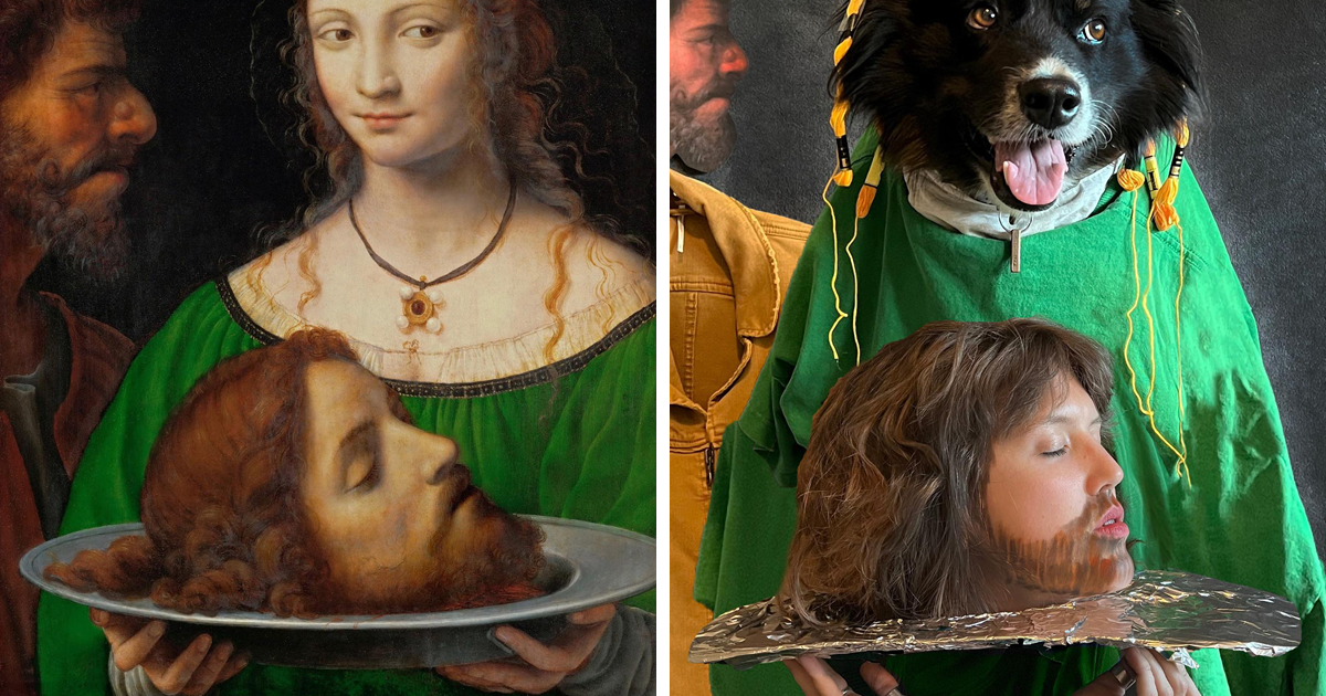 Esta artista comenzó a recrear pinturas famosas junto a su perro durante la cuarentena, y siguen tras 2 años