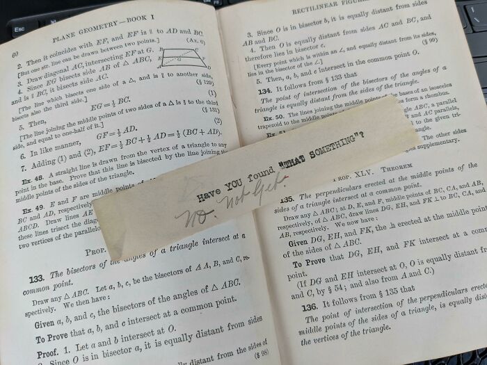 "No. Todavía no". ~ Encontrado en un libro de texto de geometría de 1908 de la escuela secundaria