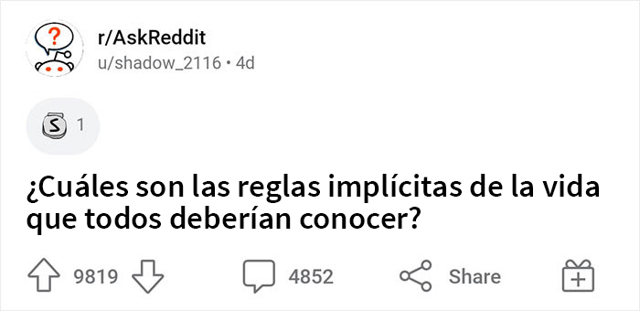 Muchas de las reglas que nuestros padres nos enseñaron cuando éramos niños no las olvidaremos jamás, pero no todos aprendimos las mismas normas. Así que decidimos buscar algunos hilos en Reddit para saber cuáles son las reglas implícitas de la vida que la gente cree que todos deberíamos acatar y ayudarlos a ustedes, Pandas, o a cualquiera que nos lea y que desee adoptar algunas de estas filosofías.