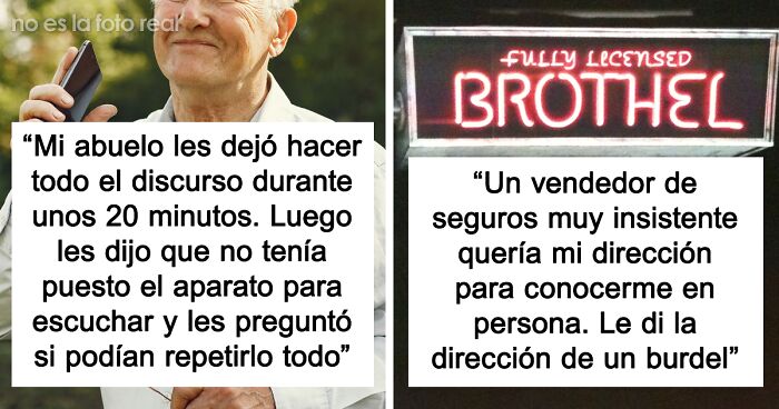 "Un vendedor de seguros muy insistente quería mi dirección para conocerme en persona y mostrarme mejor el valor de sus productos o alguna tontería por el estilo. Le di la dirección de un burdel. Un par de días más tarde me llamó enfadado para decirme que me había equivocado de dirección. Le dije que creía que buscaba a alguien a quien j*der y le colgué".