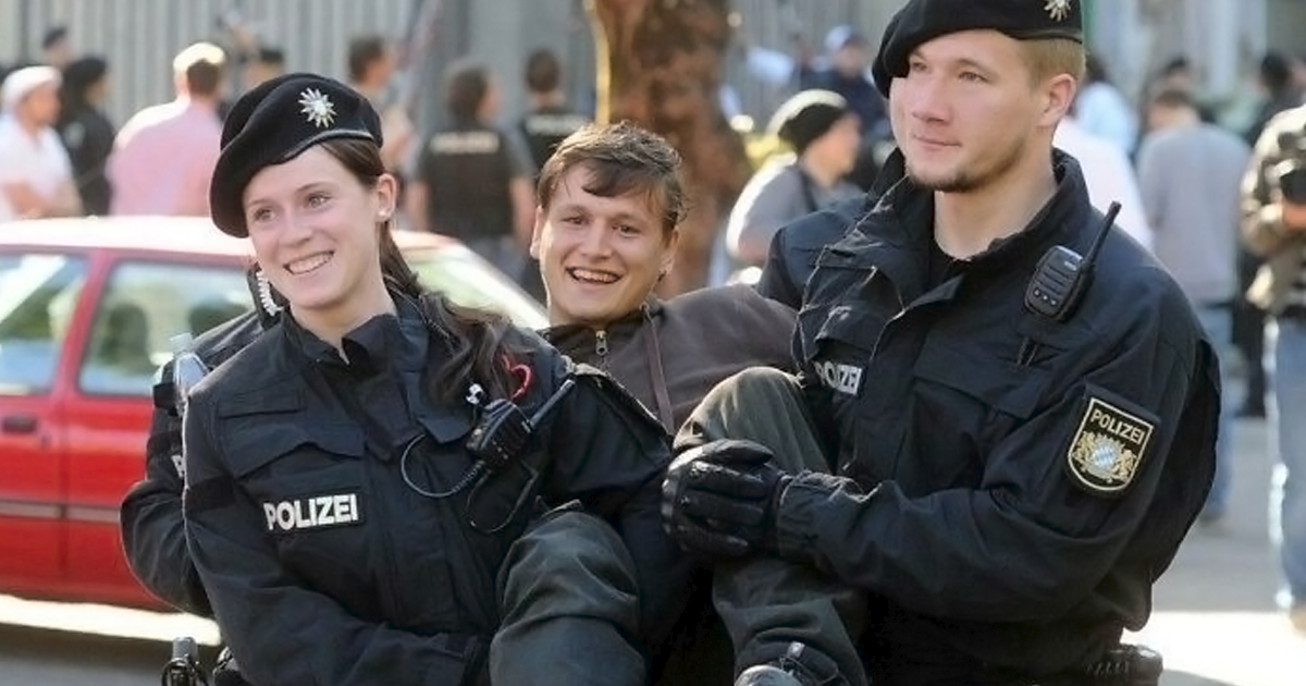 Policías alemanes y manifestante ridículamente fotogénicos