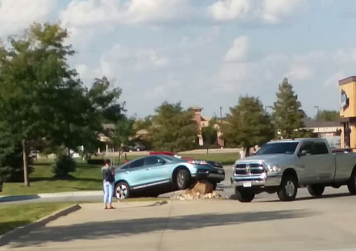 En lugar de pasar sobre la acera, se quedaron atrapados en esa ¡maldita roca!