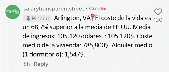 Bored Panda se puso en contacto con Hannah Williams, una analista de datos de 25 años que trabaja en el área metropolitana de D.C. y que es la creadora de este proyecto tan necesario y maravilloso llamado Salary Transparent Street. "Empecé a publicar sobre mi singular trayectoria profesional en TikTok en febrero, y uno de mis videos con mi propia transparencia salarial (cambié de trabajo en cinco ocasiones durante dos años y medio) se hizo viral. Mis seguidores me dijeron que les encantaba mi transparencia y quise animar a más personas a ser también transparentes", explica.