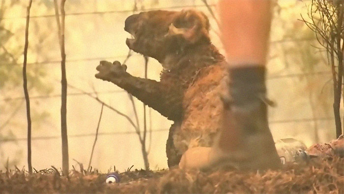 «Este koala macho estaba tan desorientado por las llamas que desafortunadamente se quemó aún más cuando caminaba de vuelta hacia el fuego. Ha recibido el nombre de Ellenborough Lewis (como su nieto). Ahora está recibiendo tratamiento y se encuentra bien acomodado en el hospital de koalas,» declararon los doctores de Koala Hospital Port Macquarie