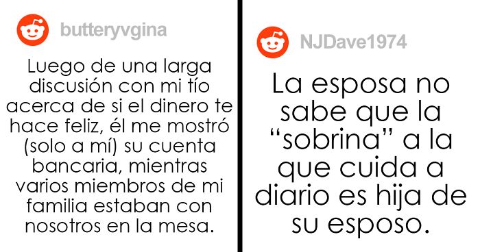 Así que en un intento de aliviar la carga que todos llevan en sus espaldas, dos usuarios de Reddit pidieron que los compartieran. Tanto u/I_LIKE_YOU_ como u/daddydempy crearon publicaciones que invitan a otros usuarios a compartir algunos de los secretos más oscuros que saben que podrían arruinar la vida de otra persona. Y muchos los tenían; aquí tienen algunas de las respuestas más populares.