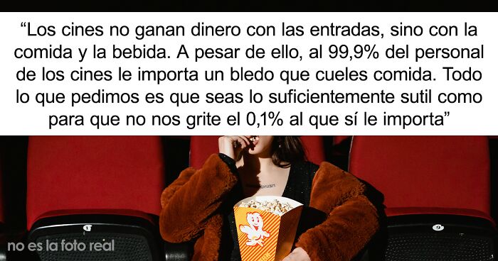 Los cines no ganan dinero con las entradas, sino con la comida y la bebida. A pesar de ello, al 99,9% del personal de los cines le importa un bledo que cueles comida. Todo lo que pedimos es que seas lo suficientemente sutil como para que no nos grite el 0,1% al que sí le importa.