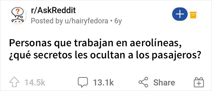 ¿Alguna vez se han preguntado si las aerolíneas tienen algún secreto que ocultarles a sus pasajeros? Pues si es así, están de suerte porque este usuario de Reddit les ha preguntado eso a los empleados de las aerolíneas, y le han dado unas respuestas increíbles y un tanto preocupantes. Al parecer, las aerolíneas ocultan más cosas de las que uno se imagina: desde que no hacen un seguimiento de los aviones hasta que siguen volando aunque tengan piezas faltantes.