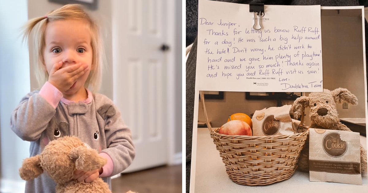 Los niños suelen tener fuertes vínculos con juguetes, peluches, mantas y otros objetos que les proporcionan confort. Estas cosas son importantes en la vida de los niños y no pueden vivir sin ellos. Todos los padres saben lo devastador que es para los niños perder sus queridos juguetes. Pero a veces los accidentes ocurren y estos quedan olvidados en aeropuertos, centros comerciales y demás. Eso es exactamente lo que le ocurrió a esta niña llamada Juniper, que perdió a su querido perro de peluche llamado Ruff Ruff en un hotel. Sin embargo, la niña no pasó demasiado tiempo apenada, ya que el juguete acabó volviendo a sus brazos de forma inesperada.