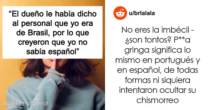 En general, ahora el equipo se ha vuelto contra la autora del post, considerándola una soplona, y la mujer incluso ha oído varias veces varios insultos en español dirigidos a ella. Lo que es aún más extraño, cuando la autora llamó a su familia en espera de apoyo, los parientes dijeron que la culpa era de ella misma por haber escuchado a escondidas conversaciones no destinadas a sus oídos. Por decirlo suavemente, una reacción un poco injusta, según la autora.