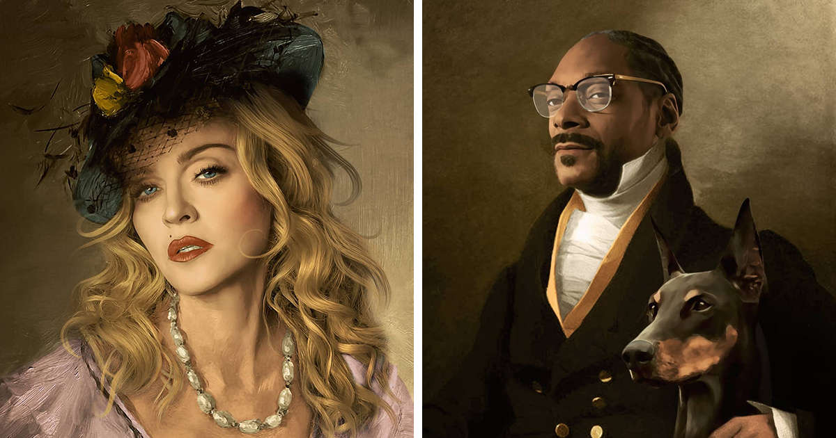 Las personas con cierto estatus siempre han dominado el mundo de los retratos, no solo por su nivel social elevado, sino también porque encargar una pintura cuesta una fortuna. Hoy en día, sin embargo, existen miles de formas más baratas y más rápidas de inmortalizar la propia imagen, que hacen que los retratos sean un medio innecesario para ello. Y al igual que el medio, los sujetos de estos retratos también cambiaron: la realeza y los nobles ya no tienen la misma importancia que antes y, lentamente, fueron reemplazados por la versión moderna de las personas de alto rango, es decir, las celebridades. El artista de Instagram Kyès recreó de manera digital estas pinturas clásicas al sustituir a las personas que eran importantes en esa época con personas que se consideran importantes hoy en día en la cultura pop. Para resumir, este intercambio funciona, probablemente porque el estilo de pintura clásica eleva —de manera inconsciente— al sujeto a un plano mucho más elevado que el mundano. Una analogía moderna podría ser "estrella", que también implica este tipo de "ser especial". En otras palabras, las pinturas clásicas y las celebridades fueron hechas las unas para las otras. ¡Vengan a ver y saquen sus propias conclusiones!