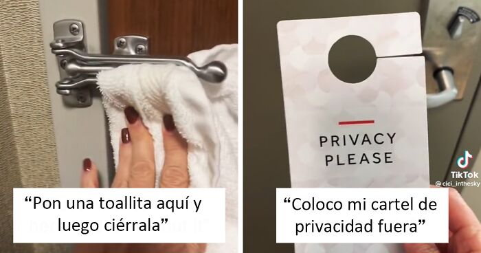 Otro consejo es asegurar la puerta principal. La mujer dice que, aunque parezca de dominio público, entró en un montón de habitaciones que ya estaban ocupadas porque le cartel de privacidad no estaba puesto.
